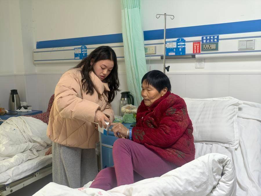 在徽县人民医院的病房里,尹淑会(右一)正在陪诊护士曹瑞瑞的指导下用药。新华社记者 郎兵兵 摄尹淑会的家乡甘肃省陇南市徽县位于秦巴山区,各村卫生室位置分散、诊疗能力有限。近年来,留守村庄的中老年群体成为村卫生室的重点服务对象,如何做好高血压、糖尿病等慢病管理,及时将急症、危重症患者送到县医院治疗,成了亟需攻克的难题。