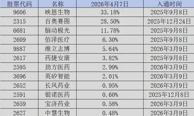值得注意的是,并非新纳入港股通就会获得资金追捧。数据显示,在这批新标的中,仅有前五家公司的内资持股比例超过5%,获得了资金的初步认可;而长风药业、银诺医药、宝济药业、中慧生物的内资持股比例甚至跌至1%以下,几乎处于被市场忽视的状态。这一现象清晰表明,南下资金的筛选标准极为严苛,对于缺乏核心管线、商业化能力薄弱或赛道过窄的新标的,资金始终保持谨慎态度。
